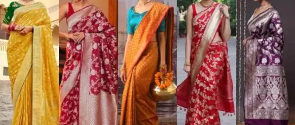 Explore our exquisite Banarasi sarees online store.