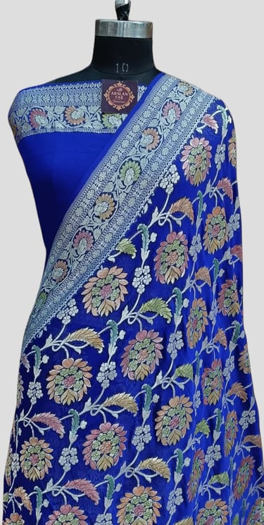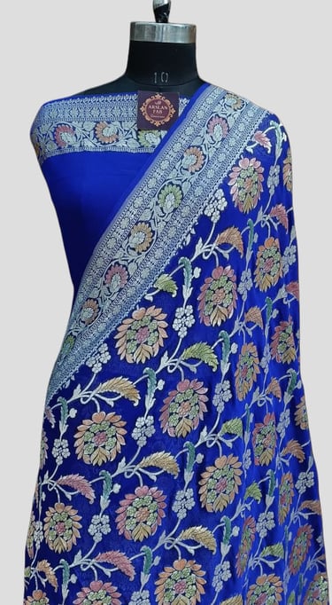 Pure georgette Banarasi sarees designed for special occasions. Available in rich colours and graceful designs