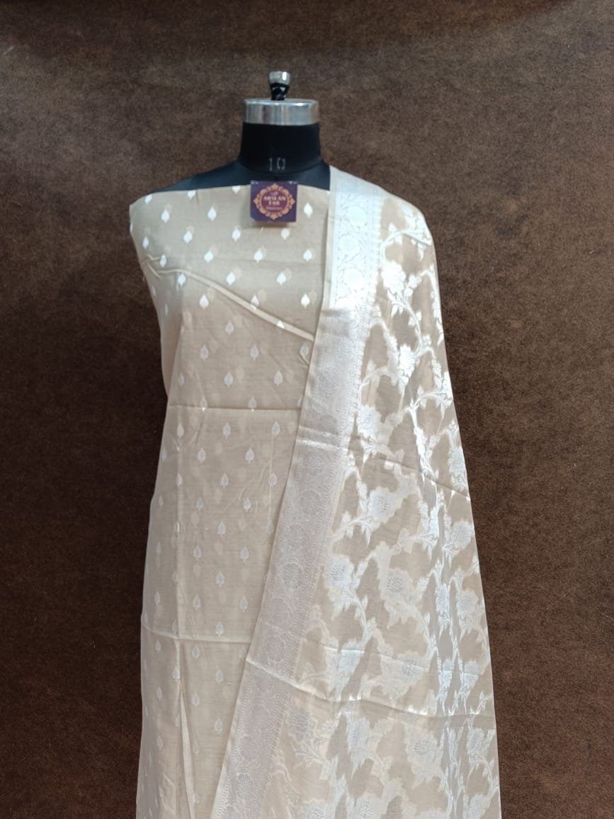 Biscuiti Reshmi Cotton Banarasi Salwar Suit with Heavy Jaal Dupatta and Zari Buti