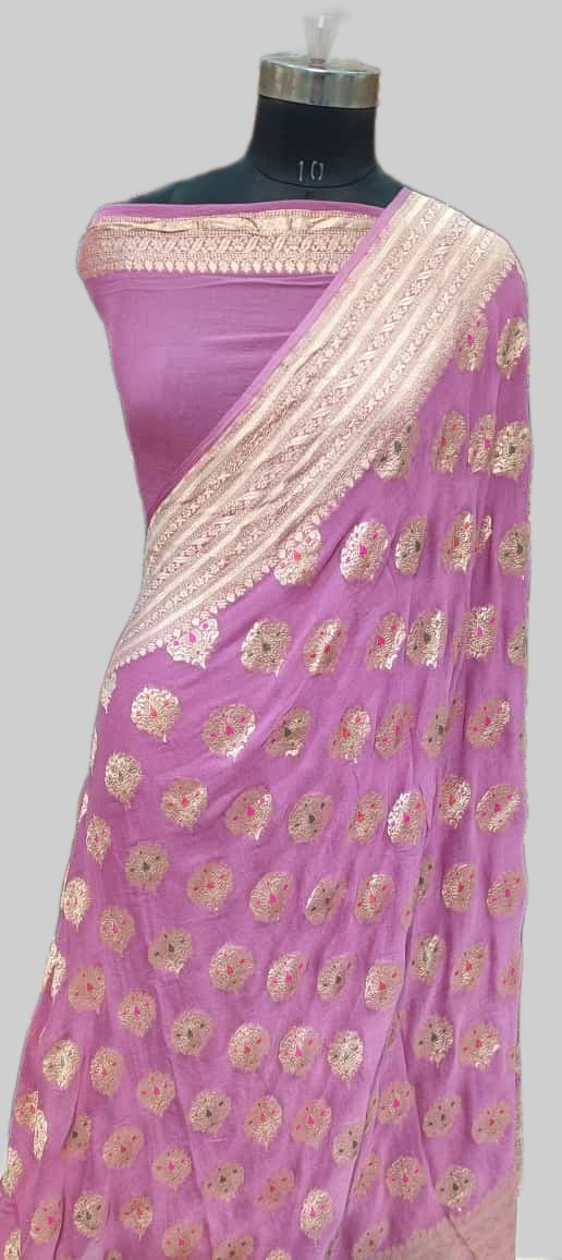 Levander Colour Georgette Zari Pallu Border Buta Saree