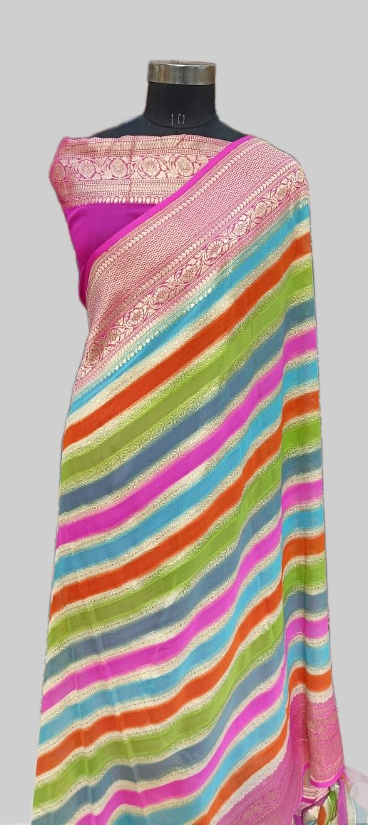Levander Georgette Zari Border Stripe Multi Dye Saree