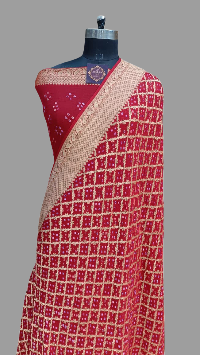 Maroon Red Georgette Zari Border Jaal Bandhni Designer Saree