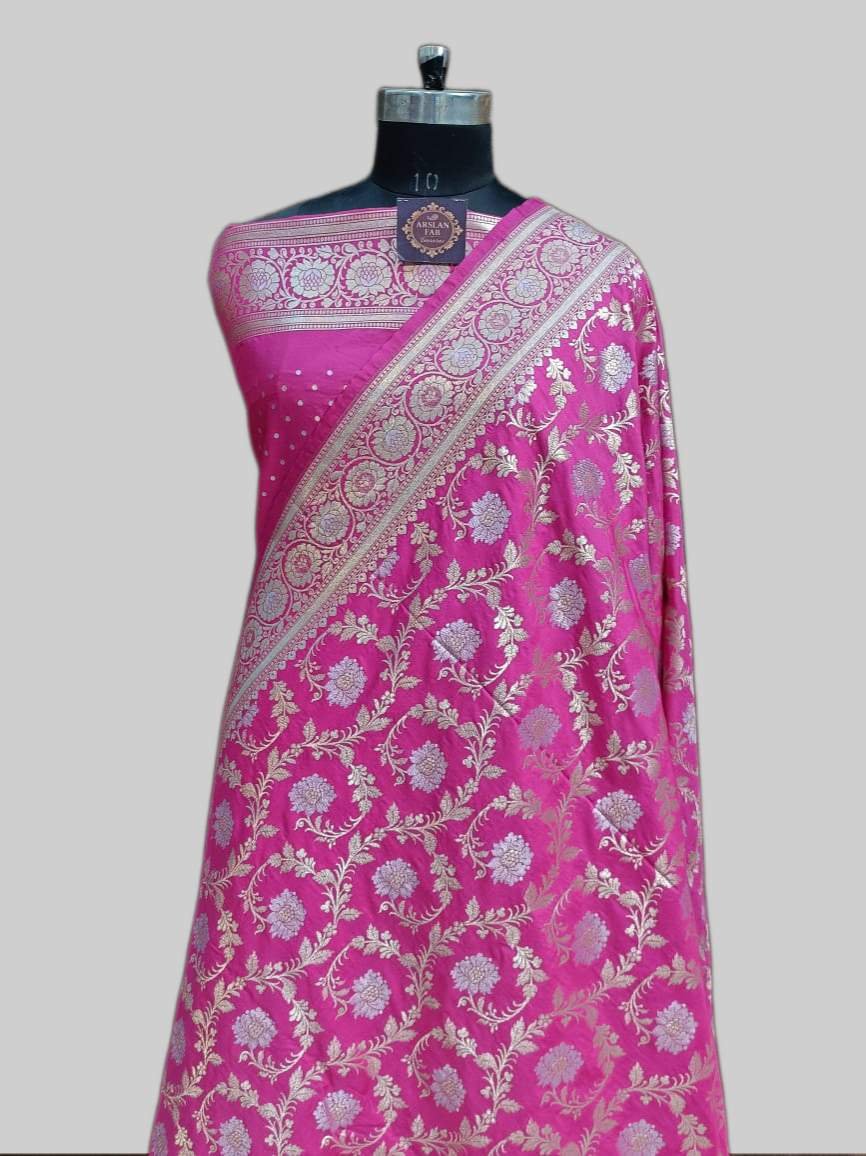 Pink Bright Semi Satan Saree Banarasi
