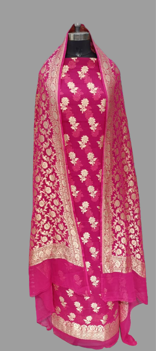 Rani Colour Banarasi Georgette Salwar Suit – 3 Piece with All-Over Zari Motifs