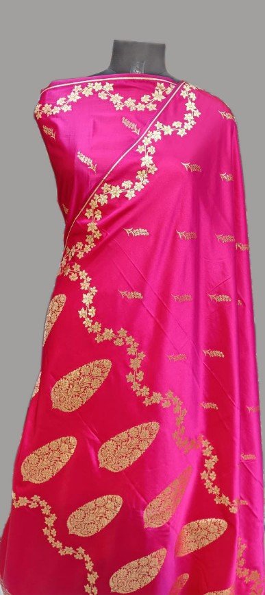Rani Pink Mashru Satan Saree Zari Fancy Border Buti